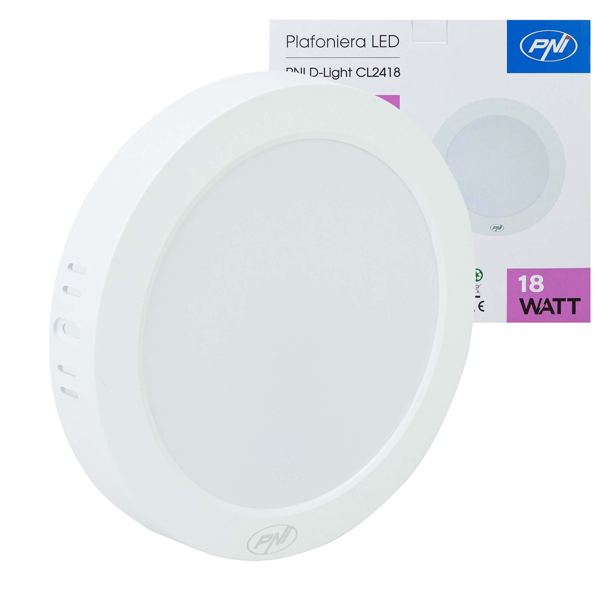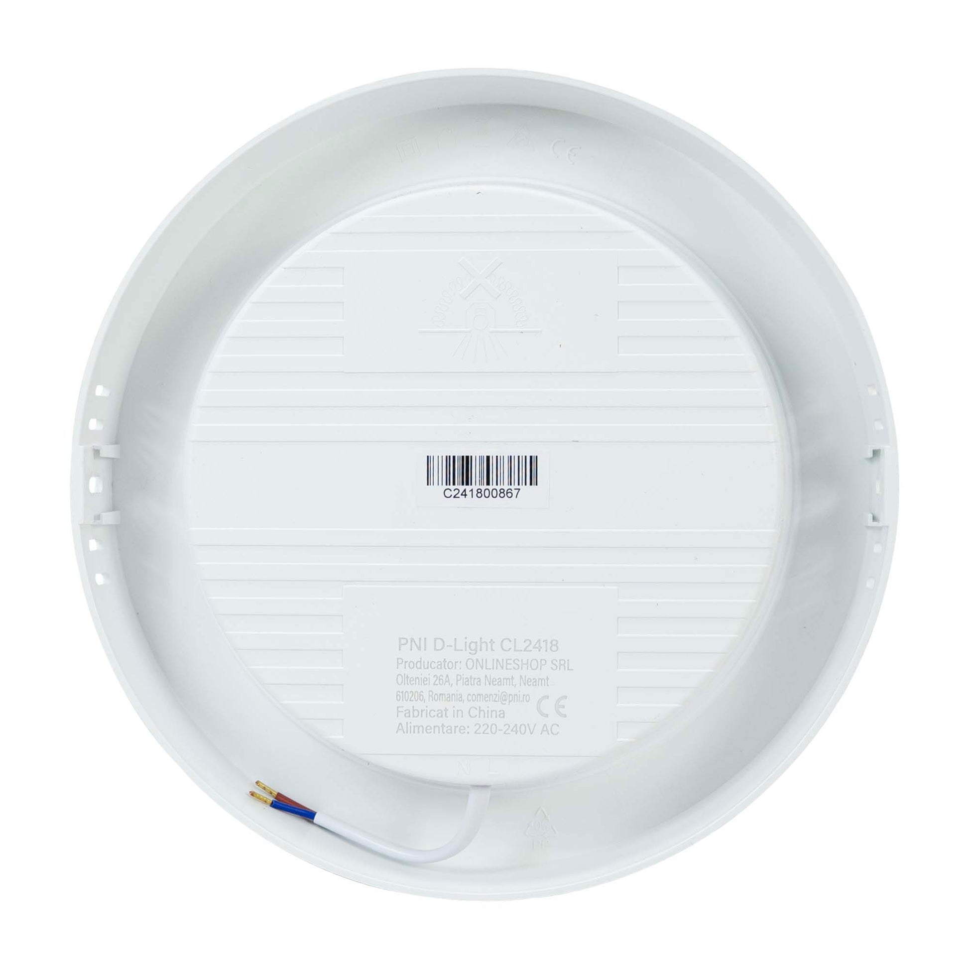 Plafoniera LED PNI D-Light CL2418 18W, rotunda 21.7 cm, 6400K, 230V, 1980 lm, alb rece