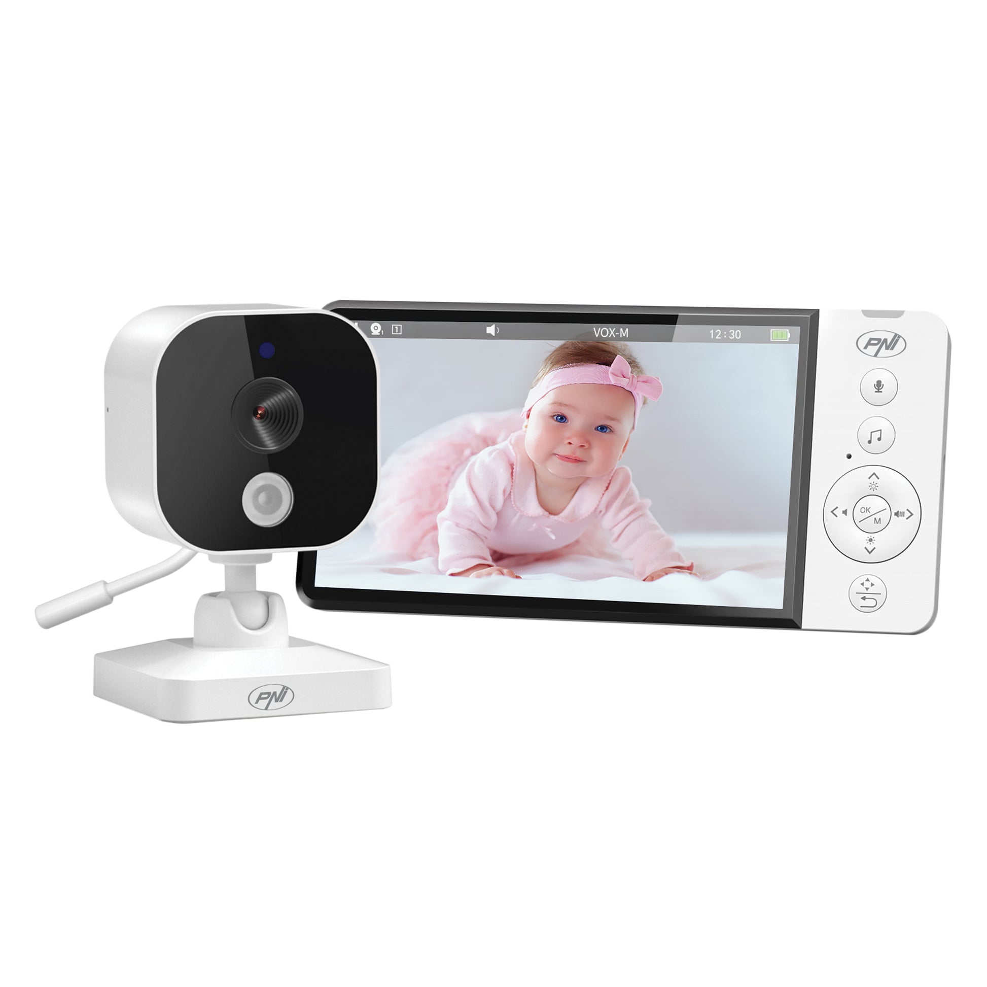 Video Baby Monitor PNI BM500S ecran 5 inch, wireless 2.4 GHz, senzor temperatura, alerta temperatura, VOX, vedere nocturna